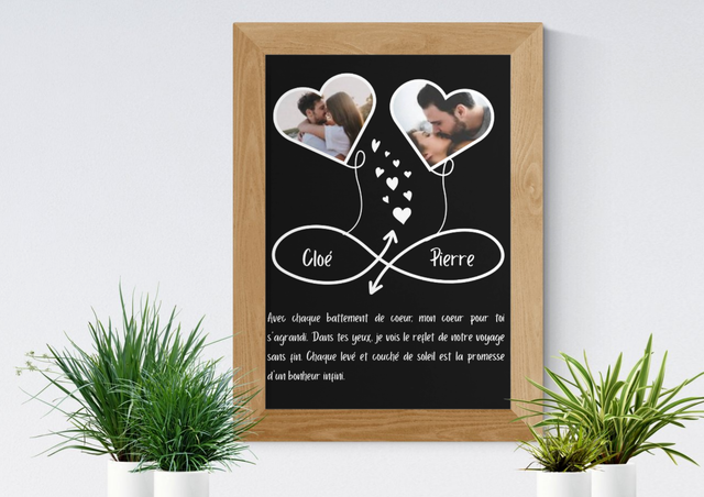 L'affiche personnalisée transforme vos photos en un design moderne et poétique.