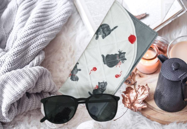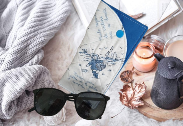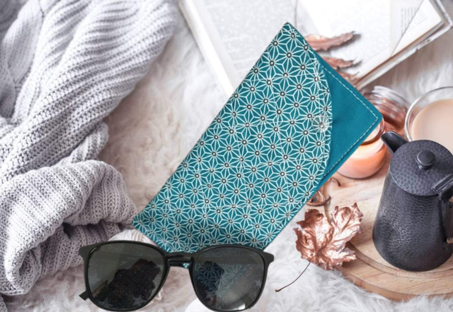 Étui à lunettes en coton matelassé avec fermeture à pression