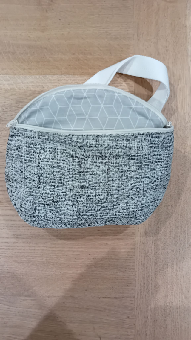 Sac banane doublé en coton gris géométrique, l'extérieur est en tissu épais gris de qualité supérieure.